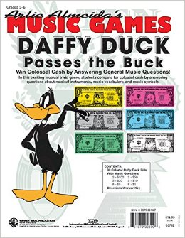 In this exciting musical trivia game, students compete for colossal cash by answering questions about musical instruments, music vocabulary, and music symbols. Terrific for an end-of-year review of knowledge! Contents of game (packaged in a 9" x 12" plastic ziplock hanging bag): 30 colorful Daffy Duck Bills (11" x 5") with music questions in six different denominations (the higher the denomination, the harder the question), plus directions/answer key.